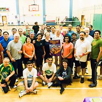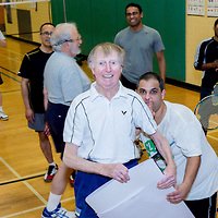 Winchester Badminton Club members, both current and past, honored their currently oldest playing member on Tuesday, January 28, 2014, presenting Phil Bainbridge with a lifetime free membership and party. Phil turned 88 years a few days earlier and has been playing in the area for 50 years. Phil had the pleasure of playing with many past players from Weston, Needham, Natick, Wellesley, and of course Winchester. Well over 50 players attended to honor him.